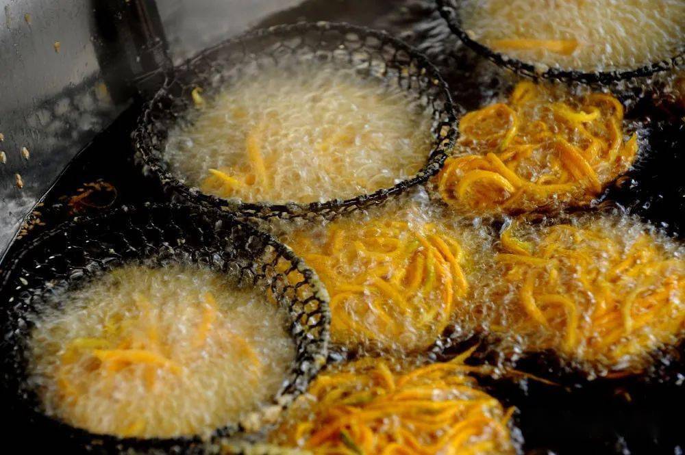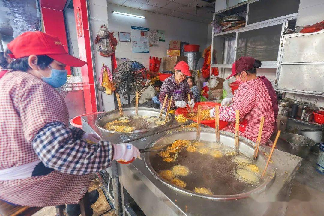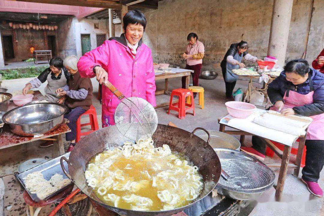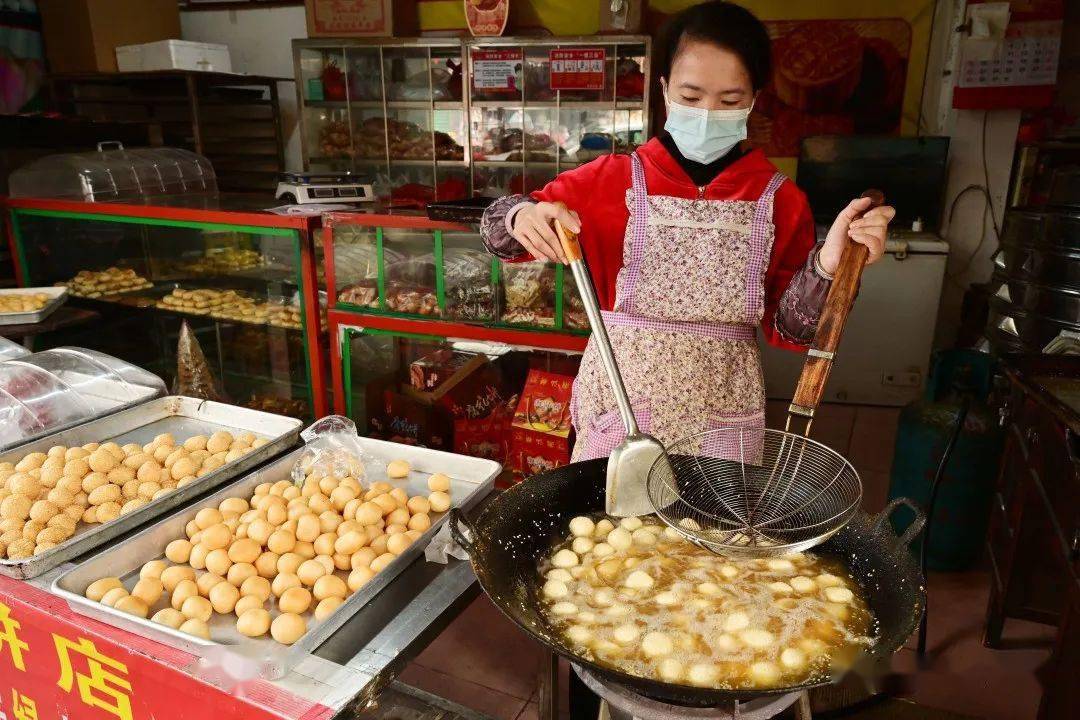 一方水土養(yǎng)一方人 梅州客家人制作油炸小吃 已有數(shù)百年歷史 按照梅州人的習俗 “見到煎圓才算過年” 色澤金黃的 煎圓 酥脆咸香的 炸馓子 油而不膩的 炸芋圓 …… 寓意著來年的生活 紅紅火火 甜甜蜜蜜 這就是客家煎炸小食意義 是客家人過年的味道 各式各樣的客家傳統(tǒng)特色年味小吃。(鐘小豐 攝) 煎圓 煎圓,寓意團團圓圓。(鐘小豐 攝) 煎圓,也叫煎堆、煎粄 客家人用糯米粉摻黏米加糖 加水攪拌 然后捏成乒乓球大小的丸子 再放到油鍋里煎至赤色后即可 熱吃香酥 放冷了以后再蒸熱了吃 又是另外一種 軟糯的口感 鐘蕊 攝 傳統(tǒng)年味油炸小吃制作忙。(鐘小豐 攝) 炸馓子 新鮮出爐的炸馓子。(鐘小豐 攝) 剛出鍋的馓子金黃酥脆。 用面粉加水揉搓面團 加入適量芝麻、油、雞蛋、精鹽等 將和好的面團碾壓成薄面皮 然后切成一張張小塊 再切瓣,做成花瓣狀 鍋里的油燒到八成熱 放入做好的馓子 用筷子輕輕地翻動使雙面炸透 炸至金黃即可出鍋 香脆可口 高訊 攝 炸芋圓 炸芋圓。(鐘小豐 攝) 炸芋圓 是用白荷芋刷成絲 加入適量清水、精鹽 糖和面粉拌勻 用湯匙舀成丸子狀 放油鍋里炸,炸至金黃色即成 剛炸好的時候又脆又酥又香 吃上一口,唇齒留香! 新鮮出爐的炸芋圓。(吳騰江 攝) 江北老街油羅街一炸品店內(nèi),工作人員正在做炸芋圓。(吳騰江 攝) 鐘小豐 攝 油角 將面粉加上雞蛋、豬油制成角皮 把和好的面團碾成薄片 做成一片片圓型角仔皮 用炒熟的花生米和芝麻 白砂糖等和成餡料 捏緊圓邊并扭上花紋 包成半月型角子 再炸成金黃色 香香甜甜一口滿足! 牛耳朵 將一層加白糖的面皮 和一層加紅糖的面皮相疊 卷實,切片,形成了 耳朵狀的圓片 入油鍋一炸, 外表好看 口感爽脆,特別誘人