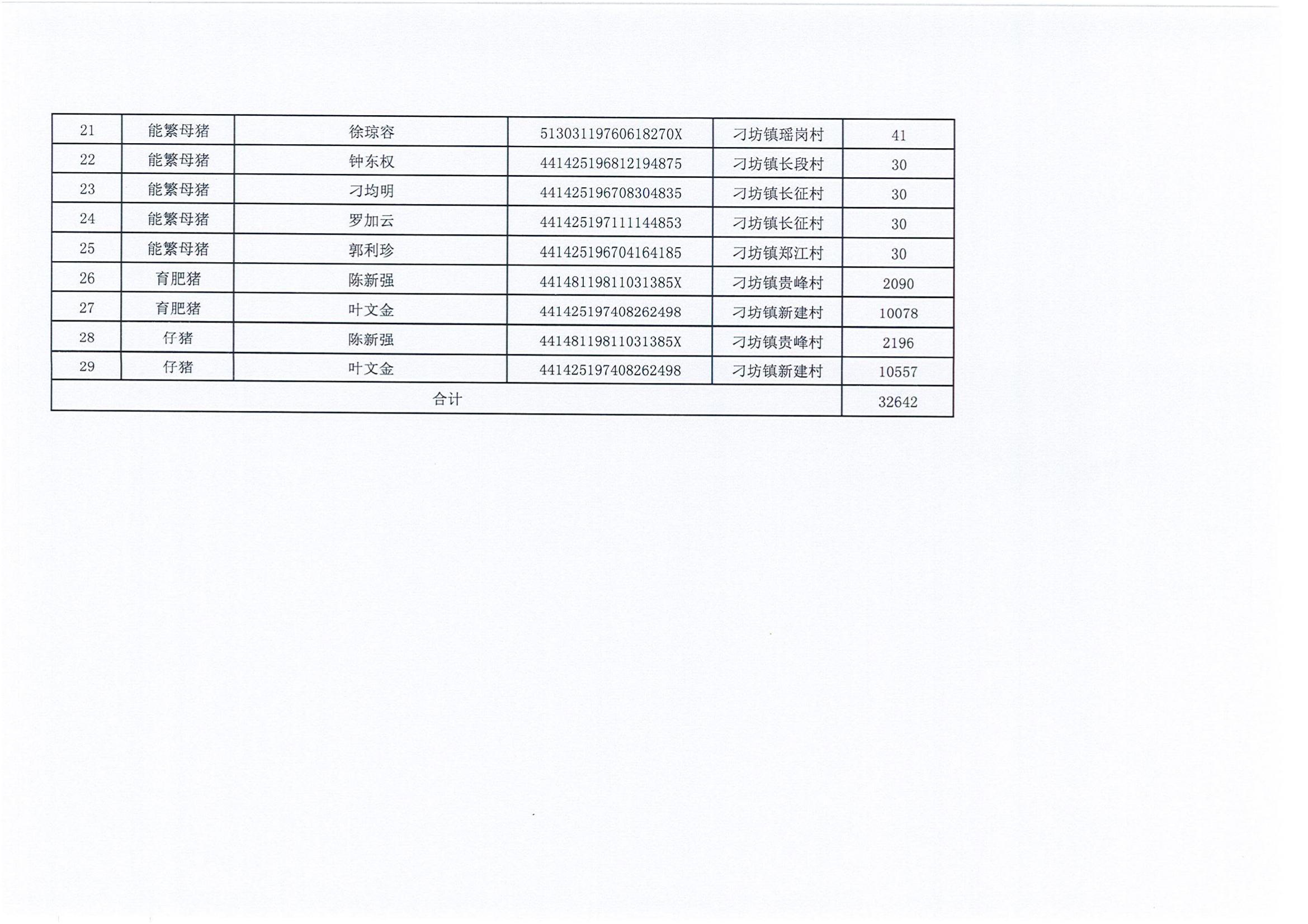 興寧市刁坊鎮(zhèn)2024年第二季度養(yǎng)殖險投保公示清單