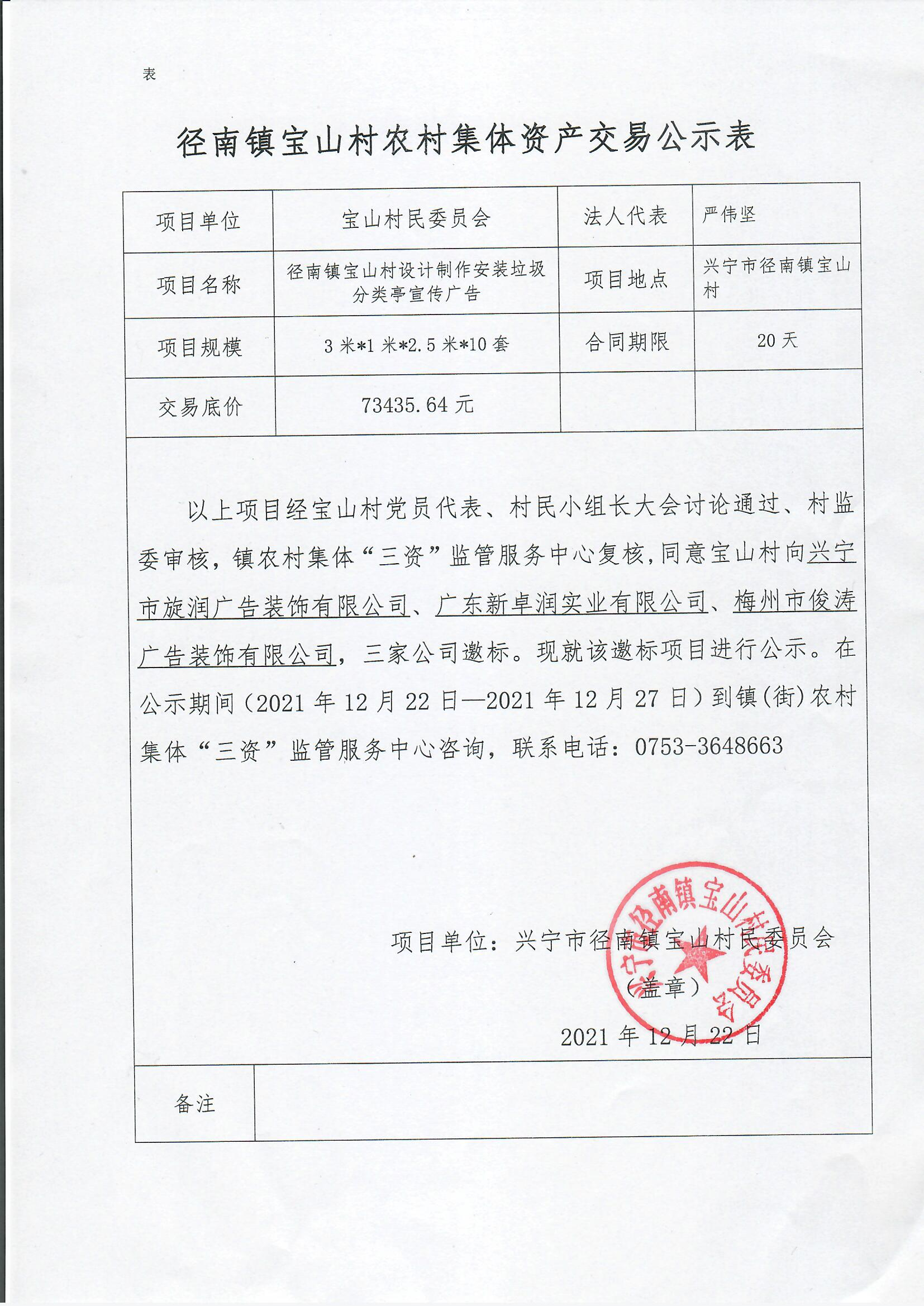 徑南鎮(zhèn)寶山村農(nóng)村集體資產(chǎn)交易公示表