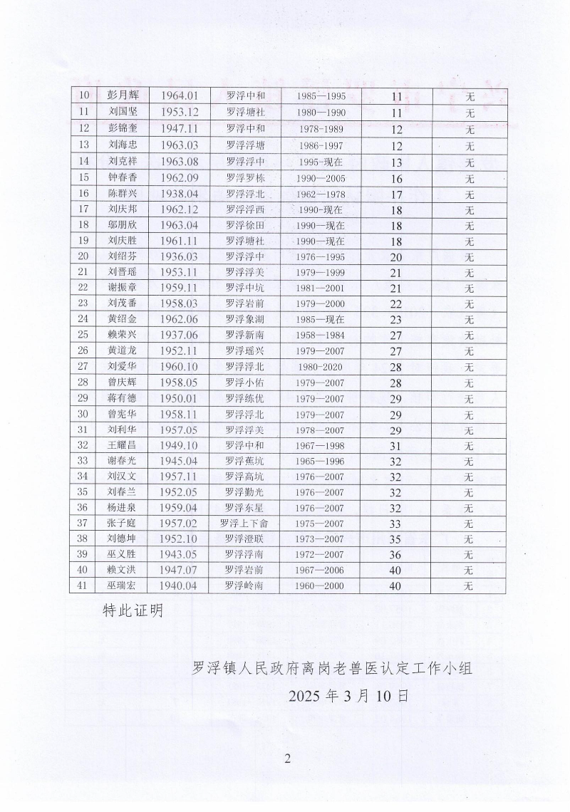 羅浮鎮(zhèn)人民政府2024年度基層老獸醫(yī)身份和工作年限認(rèn)定情況公示結(jié)果的證明.pdf