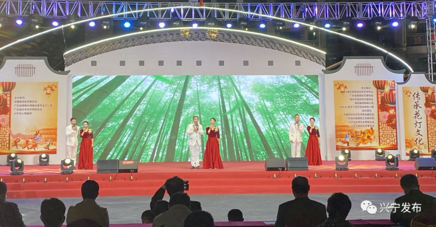 活動(dòng)現(xiàn)場(chǎng),燈光璀璨,鑼鼓喧天!來(lái)自華南師范大學(xué)的師生和興寧本地文藝工作者同臺(tái)表演,為節(jié)日添光增彩。舞蹈《金錢鬧春》、《喜上燈》、山歌演唱《新繡荷包兩面紅》、曲藝表演《粵東寶地涯興寧》等充滿客家特色的文藝節(jié)目,讓現(xiàn)場(chǎng)成為歡樂(lè)的海洋!