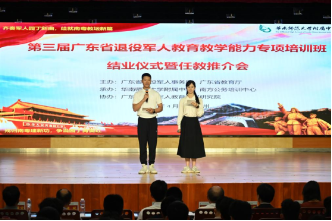 4月15日,第三屆廣東省退役軍人教育教學(xué)能力專項培訓(xùn)班結(jié)業(yè)儀式暨任教推介活動在華南師范大學(xué)附屬中學(xué)舉辦?;顒佑墒⊥艘圮娙耸聞?wù)廳、省教育廳聯(lián)合舉辦,省退役軍人事務(wù)廳黨組成員、副廳長董仲琪參加活動。