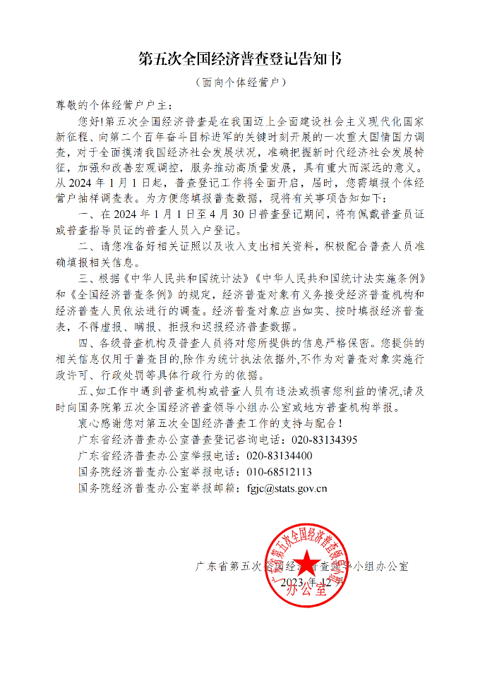 關(guān)于開(kāi)展梅州市第五次全國(guó)經(jīng)濟(jì)普查登記的公告