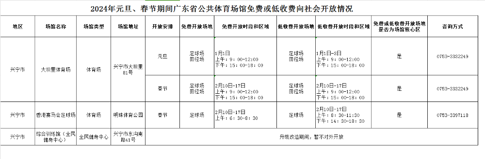 2024年元旦、春節(jié)期間廣東省公共體育場館免費(fèi)或低收費(fèi)向社會(huì)開放情況