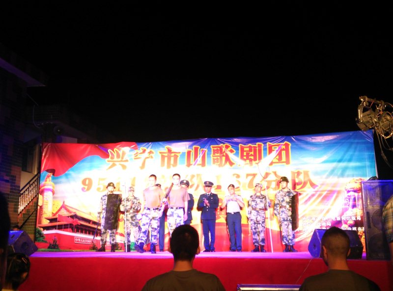 7月26日晚, 為深入貫徹落實(shí)黨的十八大、十八屆三中、四中全會和省委十一屆三次全會精神,進(jìn)一步鞏固和發(fā)展我市軍政軍民“同呼吸、共命運(yùn)、心連心”的大好局面,加快創(chuàng)建全國雙擁模范市(縣)和建設(shè)富庶美麗幸福興寧,由興寧市文廣新局主辦、山歌劇演藝中心承辦的為迎“八一”到95112部隊(duì)167分隊(duì)送戲慰問演出,晚會節(jié)目內(nèi)容豐富多彩,深受官兵們的喜歡,以歌舞、曲藝等文藝節(jié)目為載體豐富官兵文化生活,促進(jìn)軍民共建,加強(qiáng)與部隊(duì)的交流、聯(lián)誼,使之成為加深軍民魚水情的橋梁和紐帶。形成“軍愛民、民擁軍,軍民團(tuán)結(jié)一家親”的濃厚氛圍。