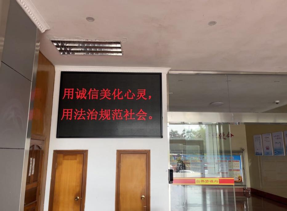 為加強(qiáng)誠(chéng)信宣傳,營(yíng)造濃厚氛圍。同時(shí)在局機(jī)關(guān)大樓入口處電子屏播放滾動(dòng)標(biāo)語(yǔ),引導(dǎo)廣大群眾在日常生活中講信用、重誠(chéng)信,切實(shí)提高群眾的誠(chéng)信意識(shí)和信用水平,自覺(jué)做誠(chéng)實(shí)守信的踐行者、倡導(dǎo)者和傳播者。