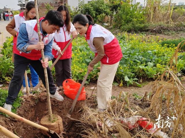 培訓(xùn)會(huì)結(jié)束后,黨員團(tuán)員三五成組,迅速行動(dòng),按照培訓(xùn)會(huì)上學(xué)到的知識(shí),揮鍬鏟土、扶正新苗、填平樹坑、踩實(shí)壓緊……大家在一片歡聲笑語(yǔ)中分工協(xié)作、默契配合,一棵棵桂花樹苗在米寨村“安家落戶”,營(yíng)造了“愛綠、植綠、護(hù)綠”的濃厚氛圍,為綠化村莊、扮靚村道增綠添彩。