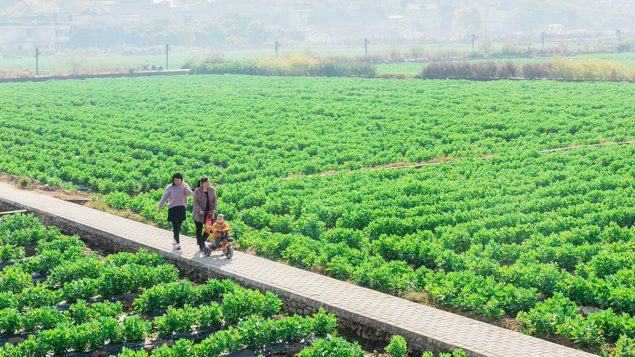 漫步鄉(xiāng)村的田埂上